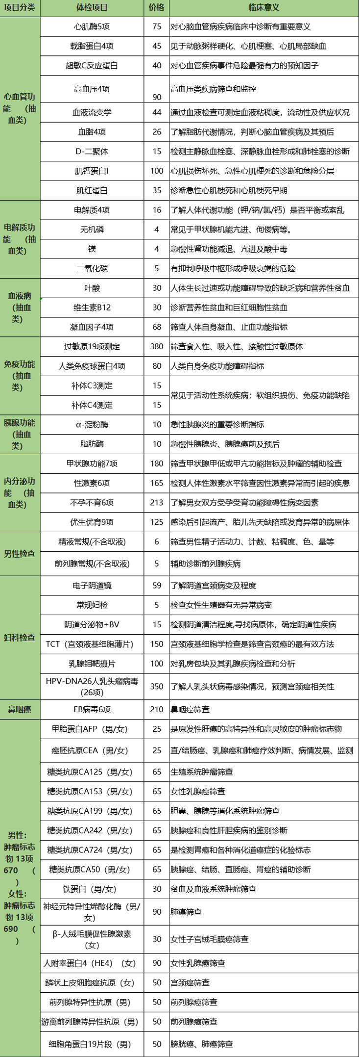 体检定制套餐