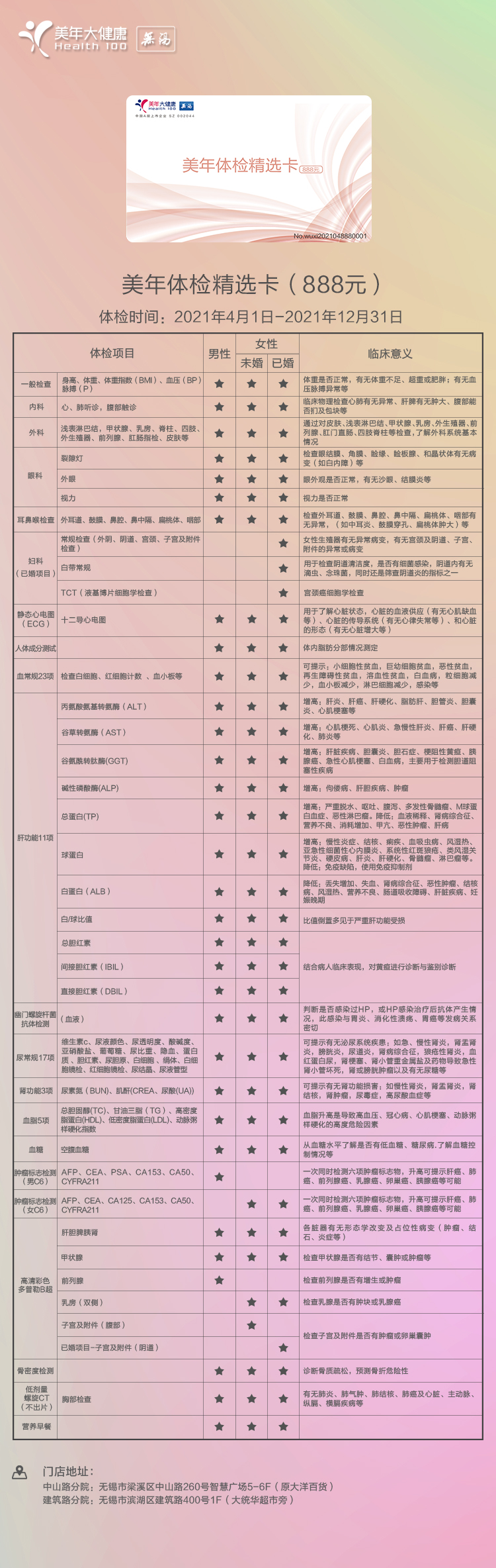 体检预约-2021全年健康卡-精选卡-无锡美年大健康